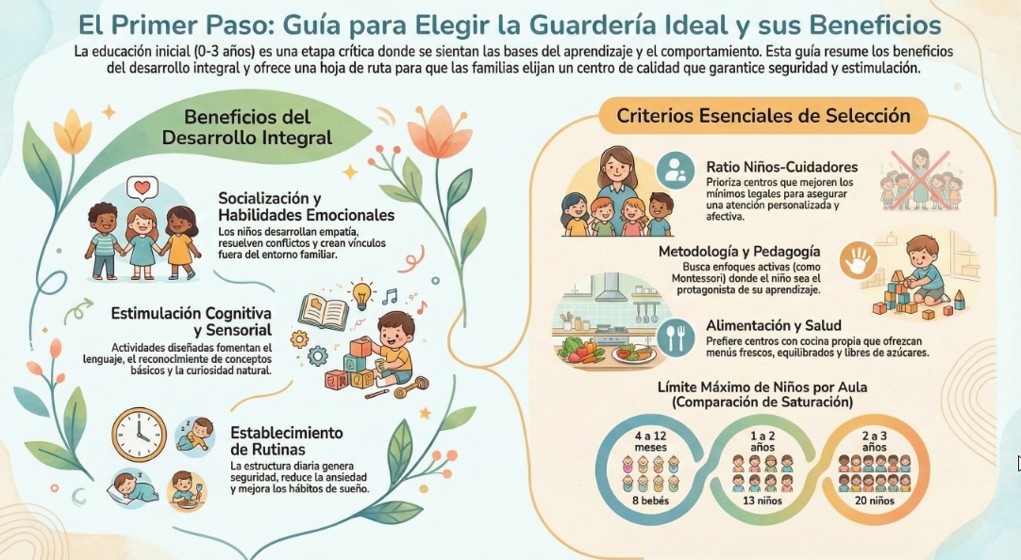 Los beneficios integrales de la educación inicial son las áreas de estimulación temprana según la edad, los estándares de seguridad y los criterios clave que las familias,